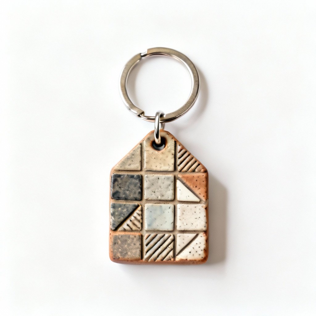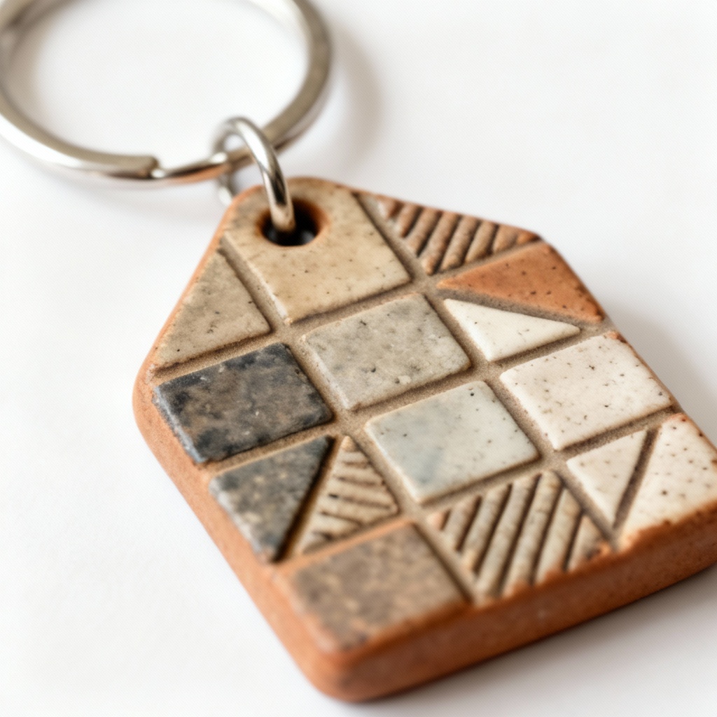 Artisan Clay & Stoneware Mosaic Keychains – Textured Geometric Design