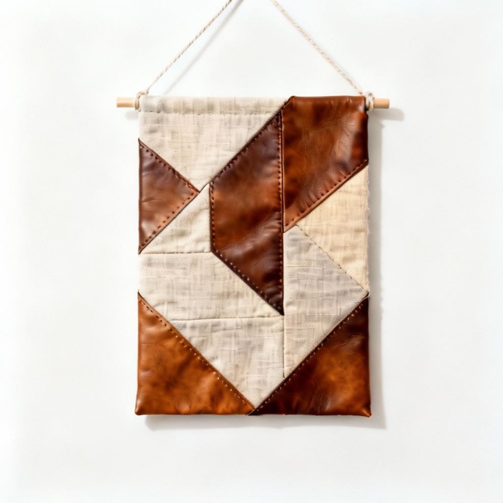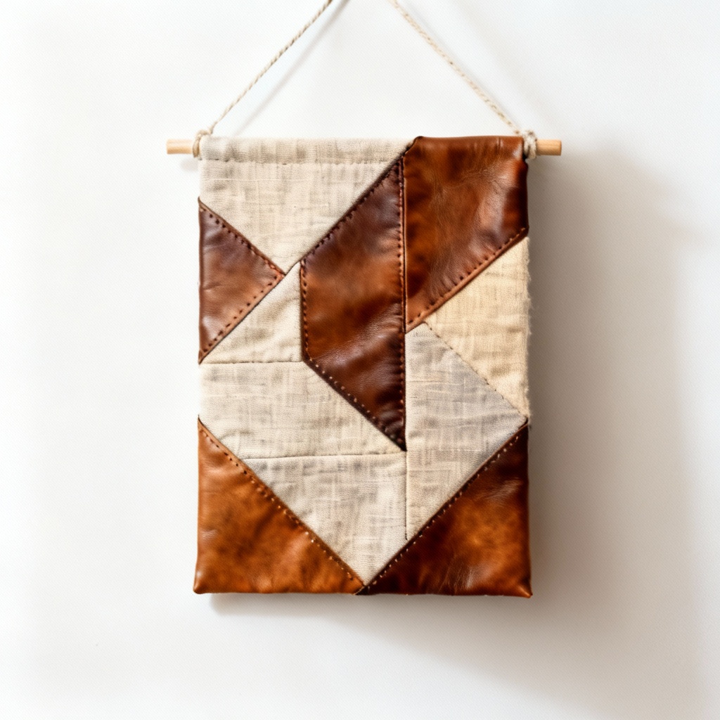 Geometric Leather & Linen Quilted Wall Art – Abstract Design, 12×18 Inches
