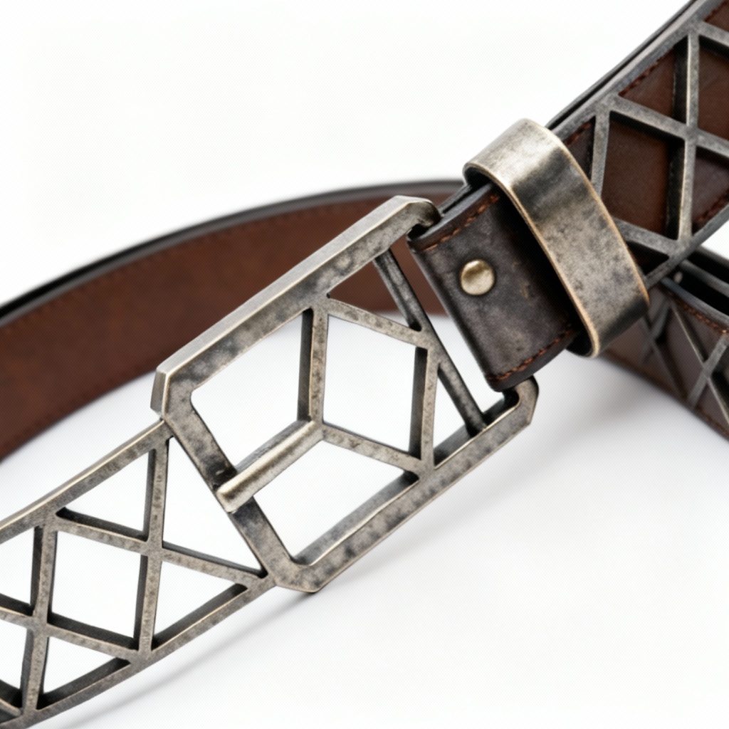 Geometric Metal & Iron Belt with Adjustable Buckle