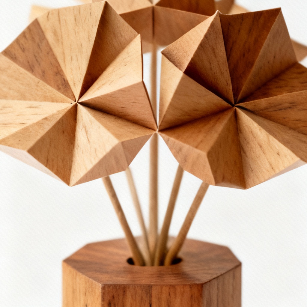 Geometric Wooden Paper Flower Arrangement – Oak Base