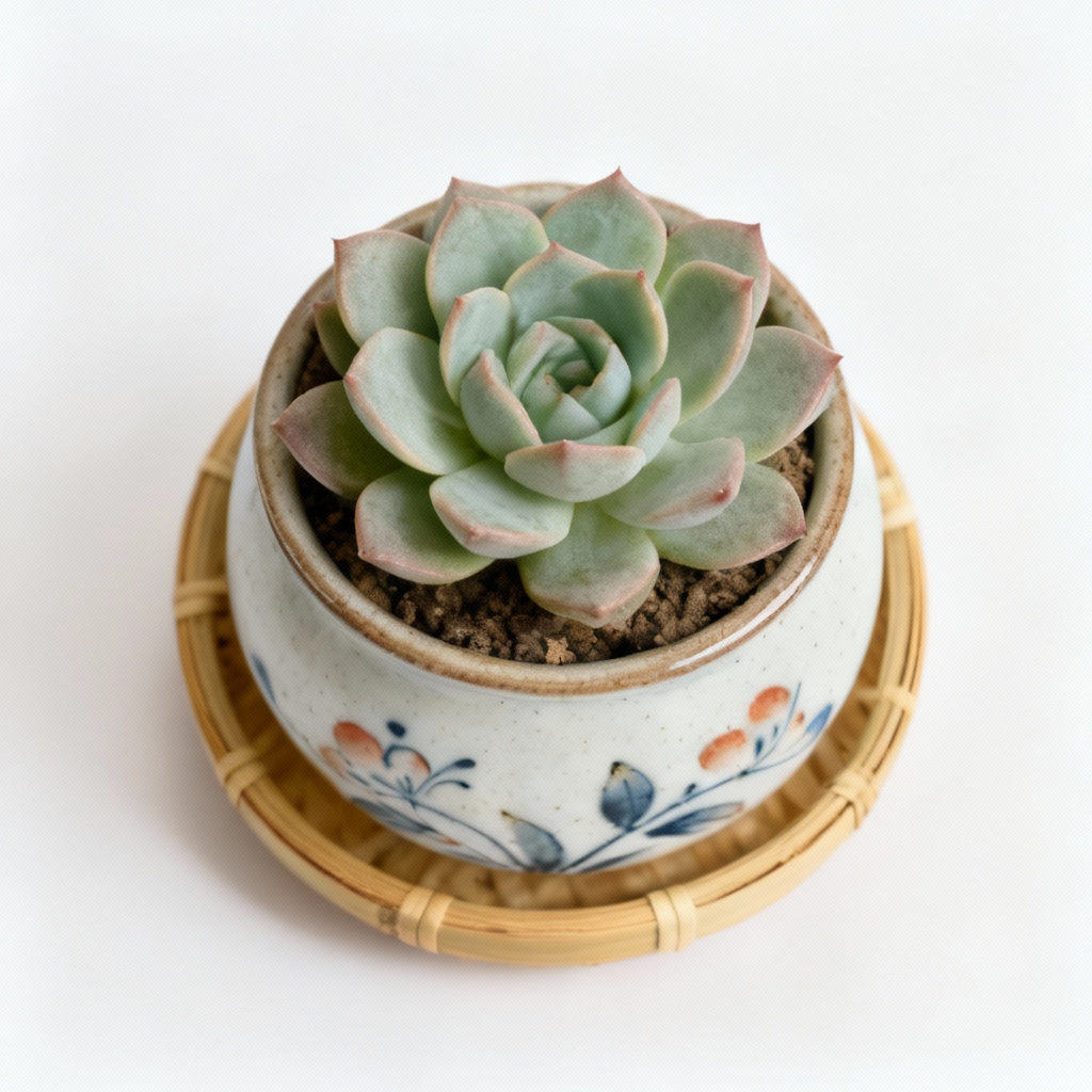 Hand-Painted Ceramic Succulent Planter with Bamboo Saucer