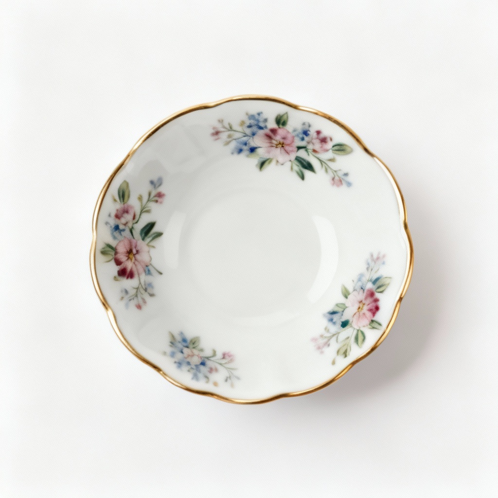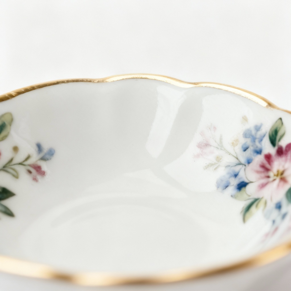 Hand-Painted Ceramic Trinket Dish with Gold Rim - Floral Design