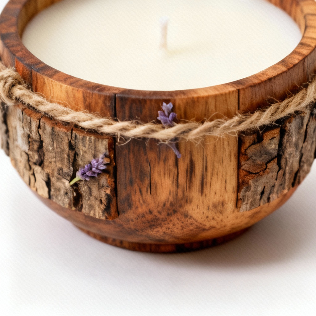 Hand-Poured Soy Wax Candle in Reclaimed Wood Bowl – Lavender Scent