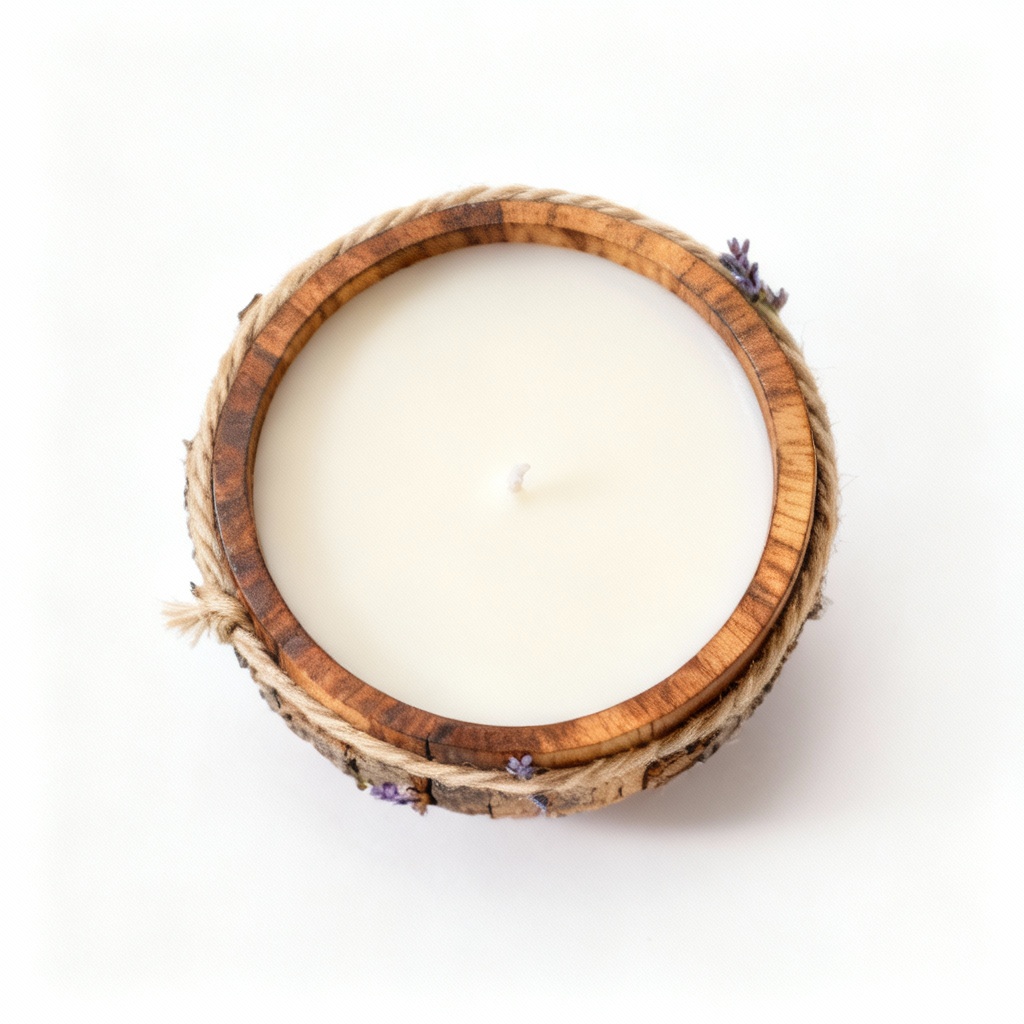 Hand-Poured Soy Wax Candle in Reclaimed Wood Vessel – Lavender Scent