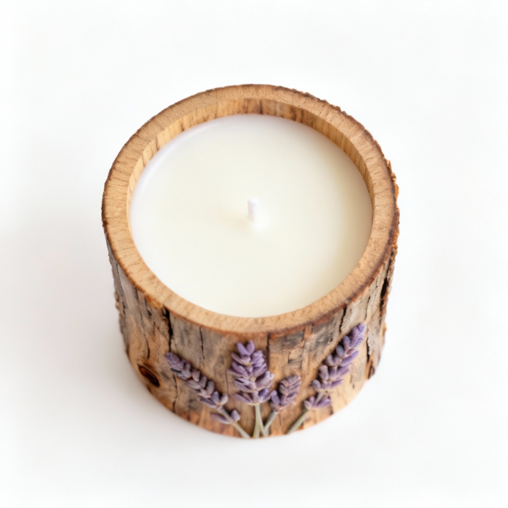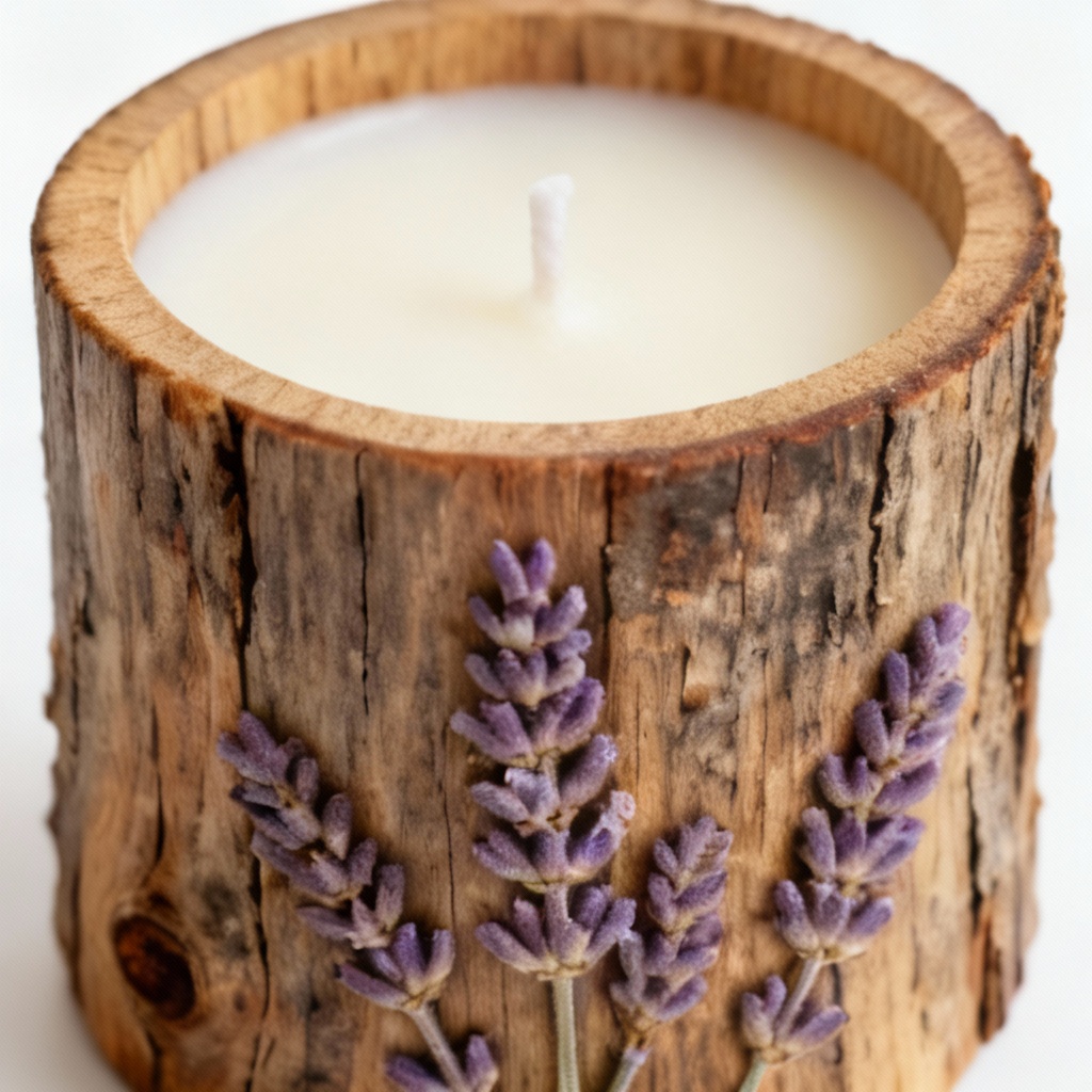 Hand-Poured Soy Wax Candle in Reclaimed Wood Vessel – Lavender Scent