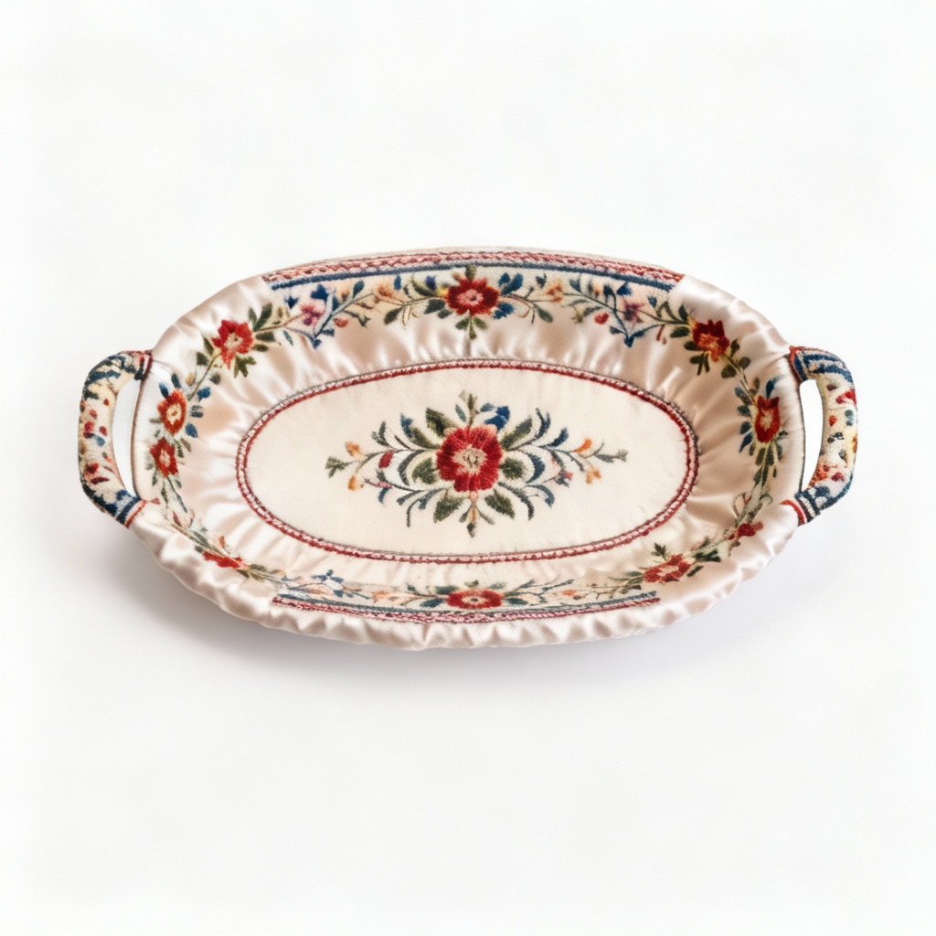 Handcrafted Fabric & Silk Bread Serving Dish – Traditional Floral Pattern