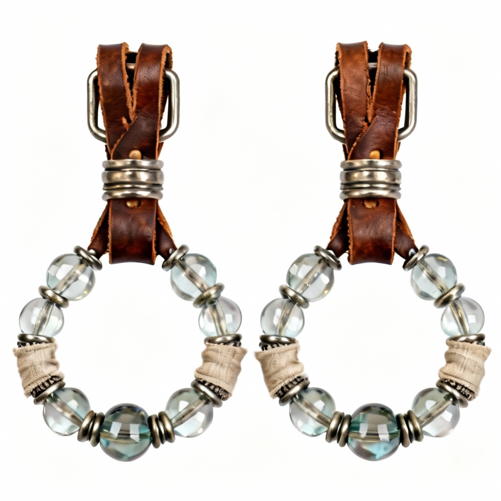 Handcrafted Leather & Glass Bead Curtain Tiebacks - Set of 2