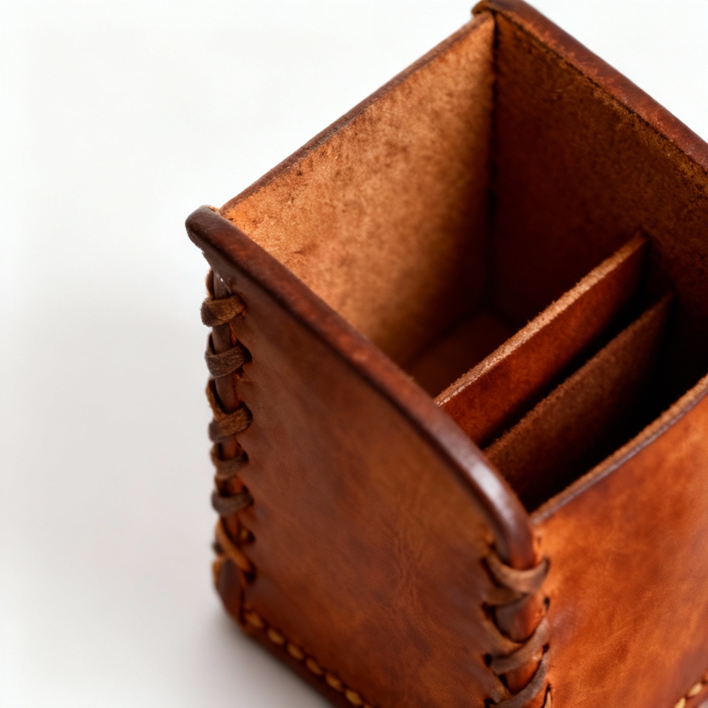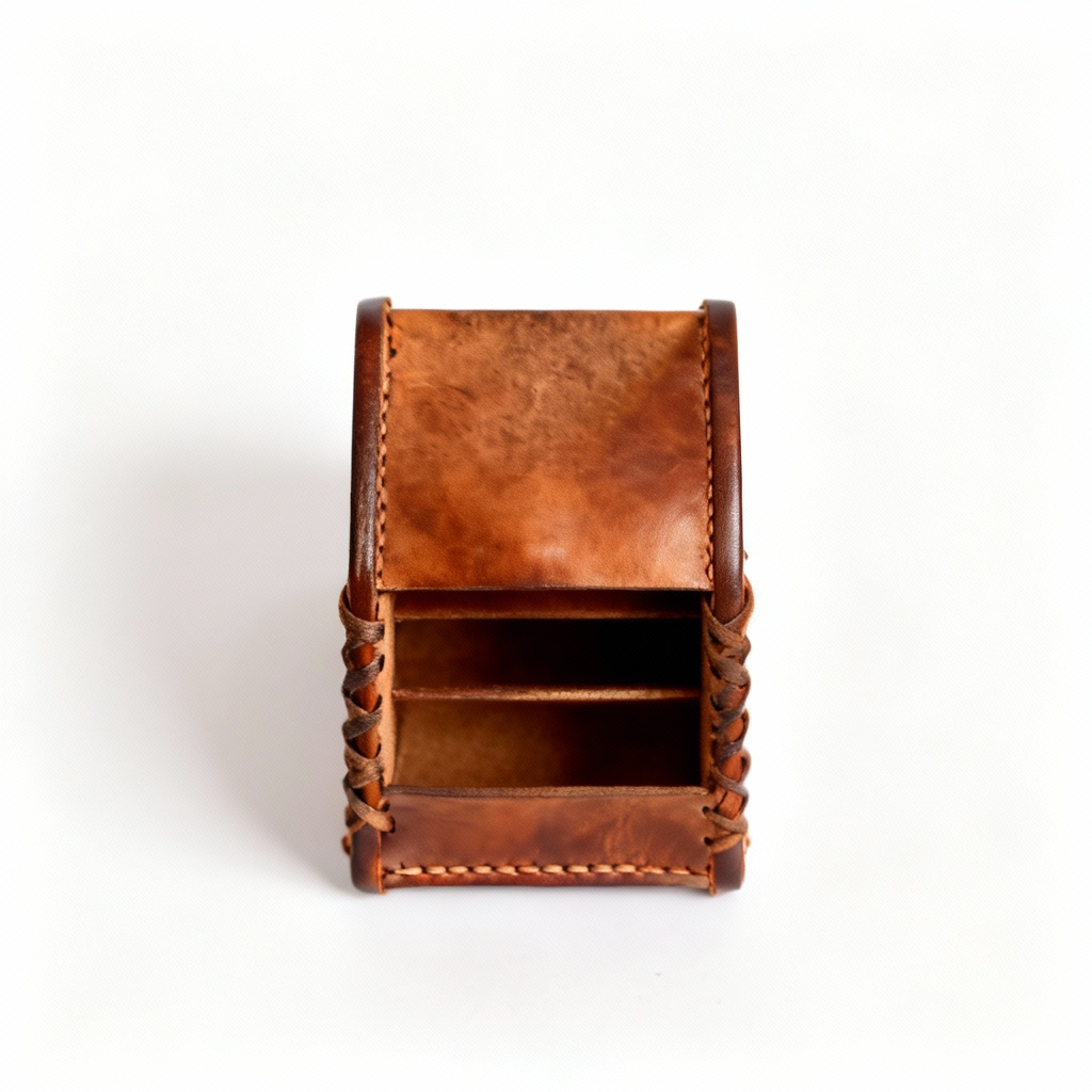 Handcrafted Leather & Top-Grain Desk Organizer - Traditional Folk Style