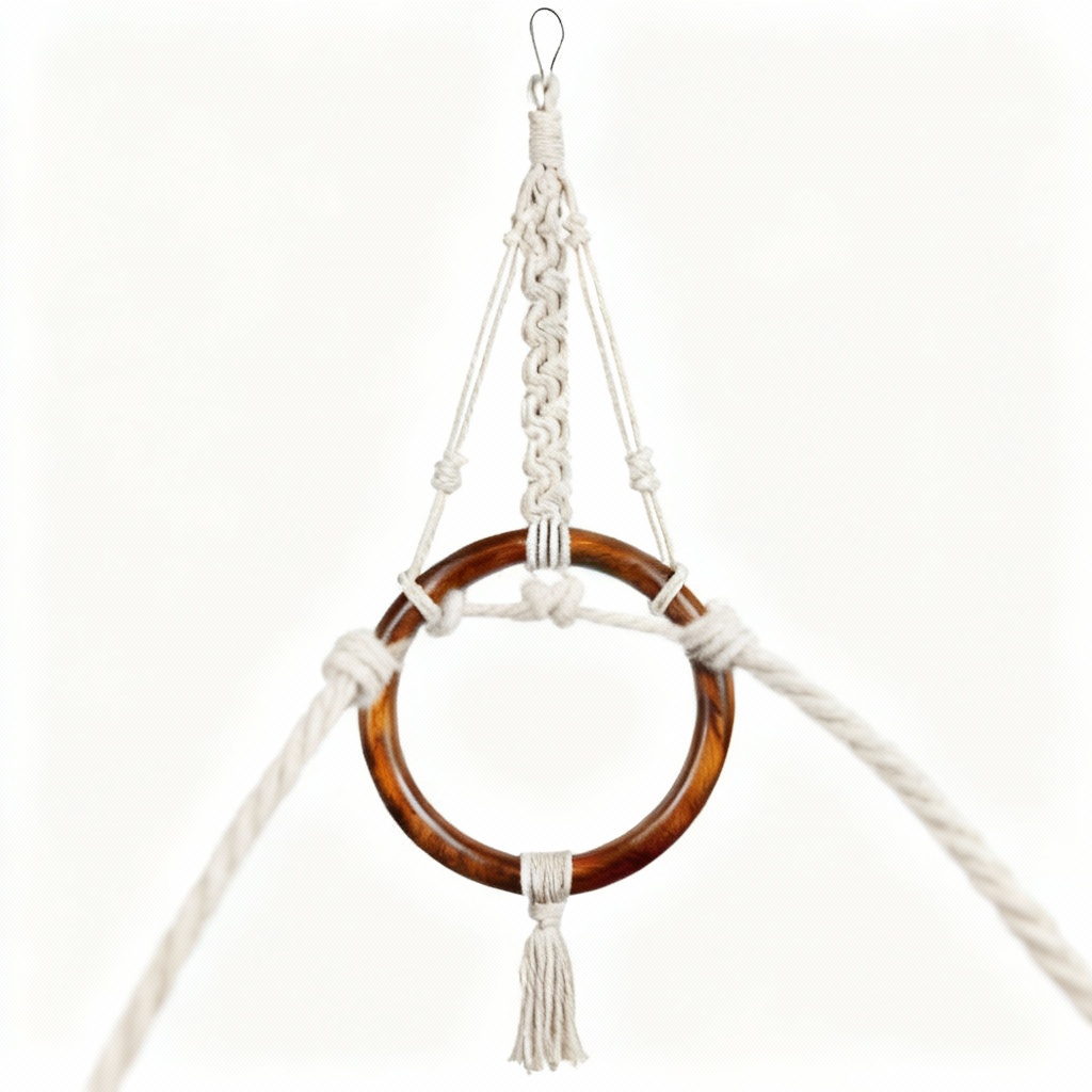 Modern Macrame Plant Hanger with Polished Wood Ring – 30 Inch
