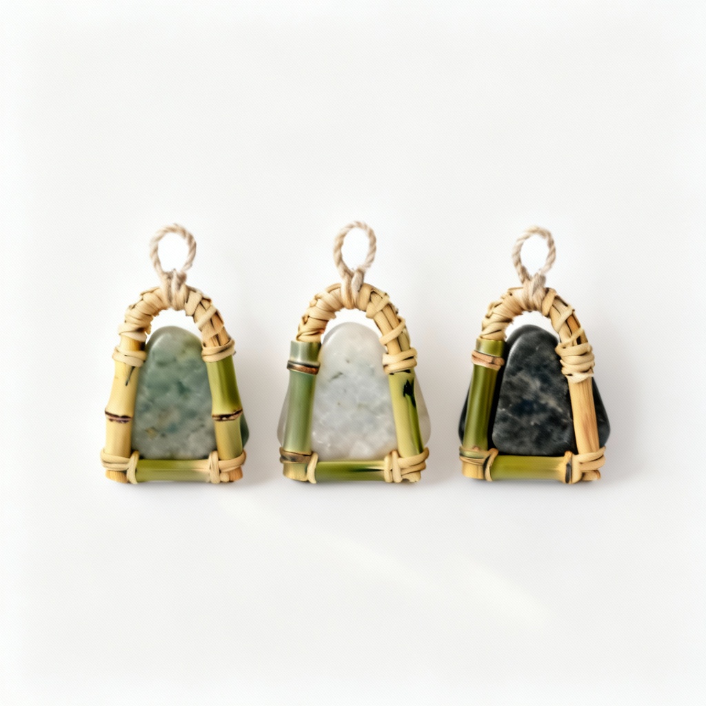 Natural Stone & Bamboo Assemblage Pocket Charms – Set of 3