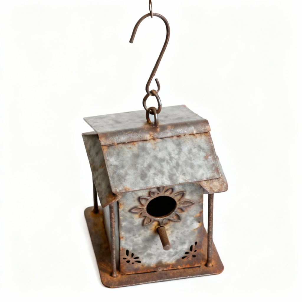 Primitive Metal & Iron Birdhouse – Rustic Hanging Shelter