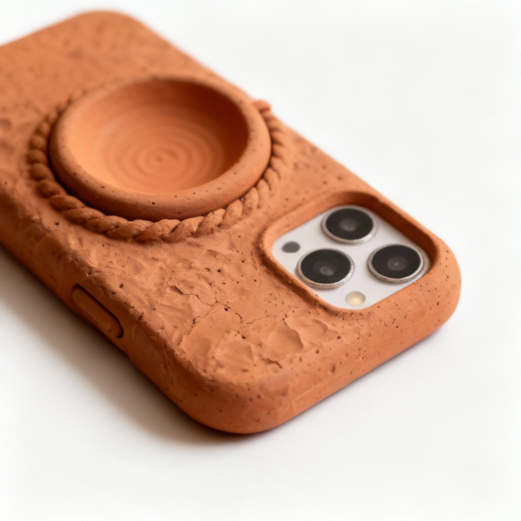 Textured Clay Phone Case with Earthenware Inlay – Fits iPhone 13