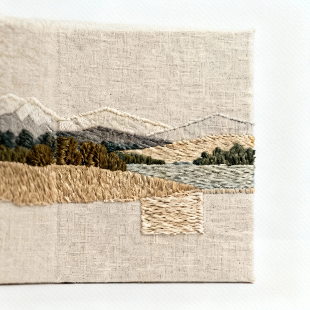 Be the first to review “Textured Fabric Landscape Collage on Linen Panel – 8×10” Cancel reply