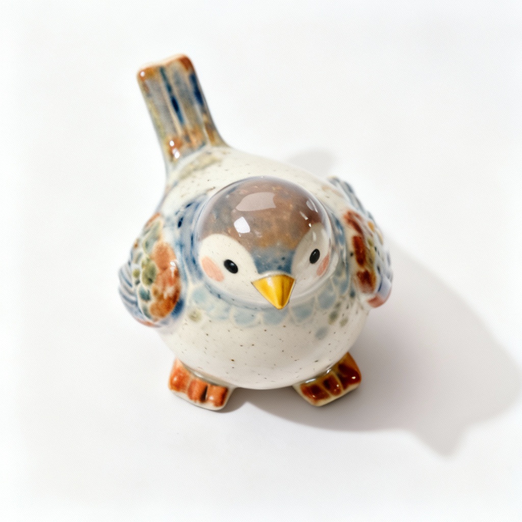 Whimsical Clay & Porcelain Bird Sculpture – Hand-Painted Detail
